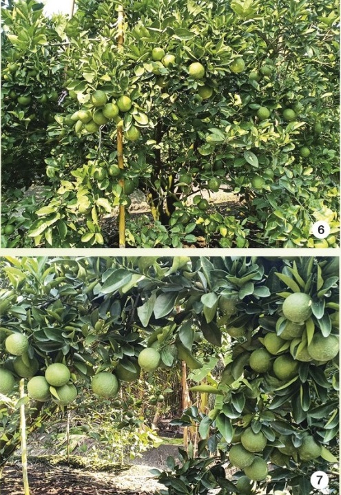 คุณกาญจนา : สำหรับการดูแลส้มที่สามารถทำผลผลิตได้ ดิฉันจะเน้นบำรุงต้นให้ต้นใหญ่ สมบูรณ์ ใบต้องเขียว และ ที่สำคัญต้องไม่ให้ส้มเป็นโรคแคงเกอร์ จะใช้สารเคมีกลุ่มคอปเปอร์ ไฮดรอกไซด์ ฉีดพ่นช่วงที่ฝนตกชุก ซึ่งมีความเสี่ยงที่แคงเกอร์จะกระจายทั่วสวน
