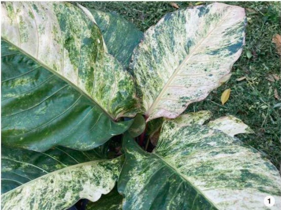 1-4 ไม้ด่างที่ปลูกในกระถาง กอใหญ่ ใบหนา ใบสะอาดมันวาว