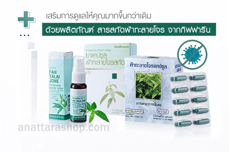 เพิ่มโอกาสในการดูแลสุขภาพได้ในวันนี้ กับ ผลิตภัณฑ์จากสารสกัดฟ้าทะลายโจร ที่มีงานวิจัยรองรับว่า มีผลยับยั้งเชื้อไวรัส และมีฤทธิ์ต้านการเพิ่มจำนวนของเชื้อไวรัสได้ และยังมีสรรพคุณ บรรเทาอาการเจ็บคอ แก้ไอ แก้ไข้หวัด ช่วยเสริมภูมิคุ้มกัน