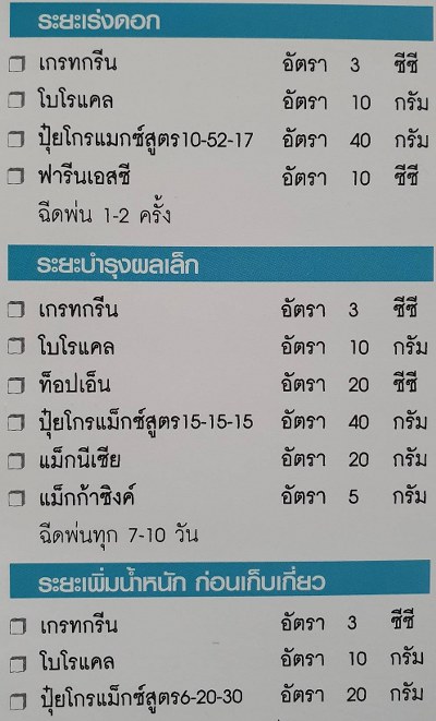 • ปุ๋ยเกล็ดโกรแม็กซ์สูตร 15-15-15 : ลูกออกมาผิวเรียบเนียน ได้ขนาดที่พอเหมาะไม่ใหญ่ไม่เล็กเกินไป