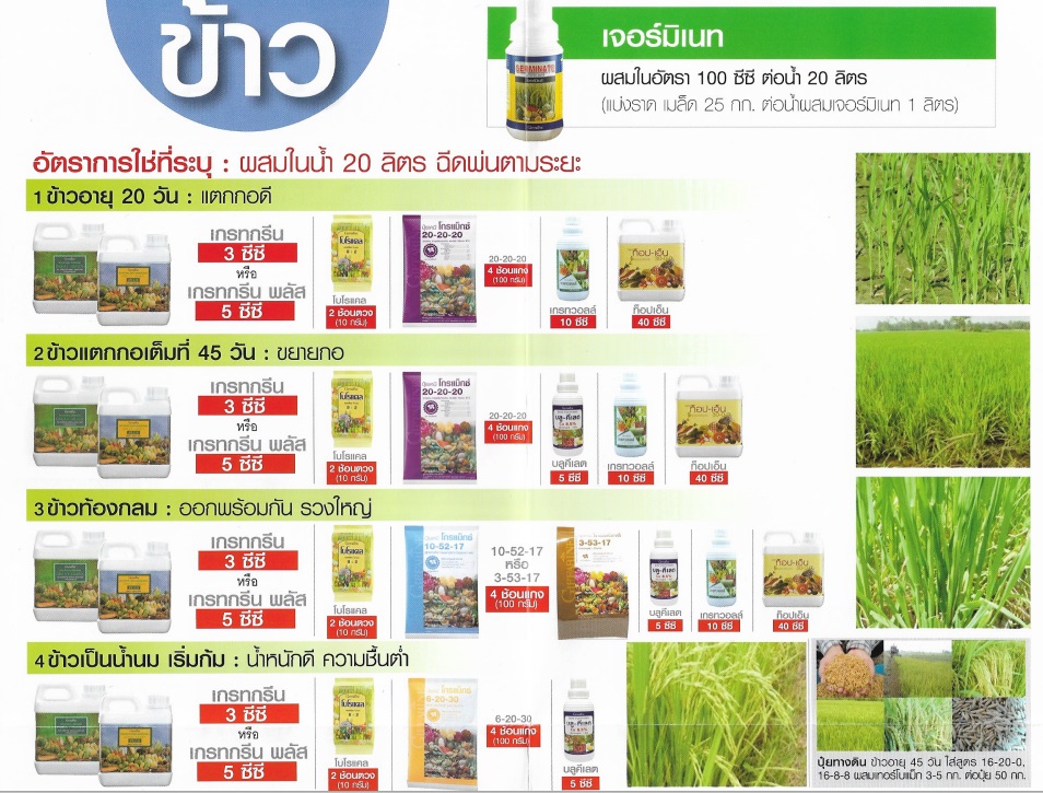 เกรทกรีน อัตรา 5 ซีซี ต่อน้ำ 20 ลิตร เพื่อทำให้เมล็ดข้าวรากยาว หน่อแข็งแรง แตกกอดีให้ ผลผลิตสูง ช่วงข้าวอายุ 7 วัน หลังการปักดำ ผมจะใช้ปุ๋ยทางดิน สูตร 16-20-0 + ปุ๋ยอินทรีย์