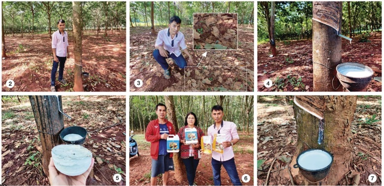 คุณศุกกร : ผลผลิตยางพาราของผมได้คุณภาพและปริมาณ ที่มาก จนเพื่อนๆ ที่ปลูกยางสนใจใช้ปุ๋ยกิฟฟารีน ตอนนี้ 10 กว่า สวนแล้ว ผมจะพาไปขมอีกสวนที่ใช้ปุ๋ยกิฟฟารีน 3 ปีแล้ว สวนนี้ผมรับจ้างกรีดด้วย เป็นสวนของคุณสิริตา ธรรมโชติ ครับ